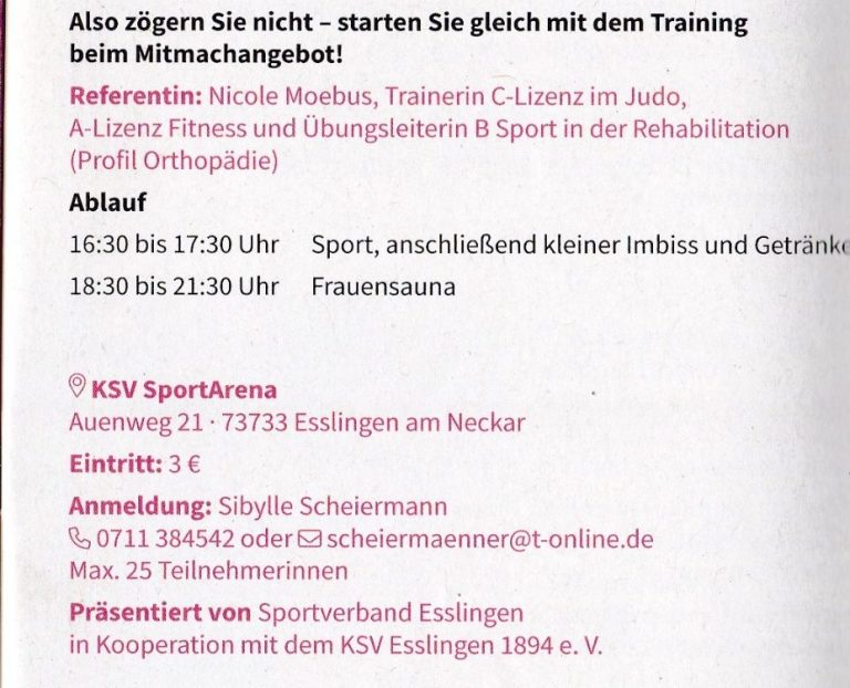 19.03.2026 Mitmach-Aktion des Sportver- bands an den Esslinger Frauenwochen